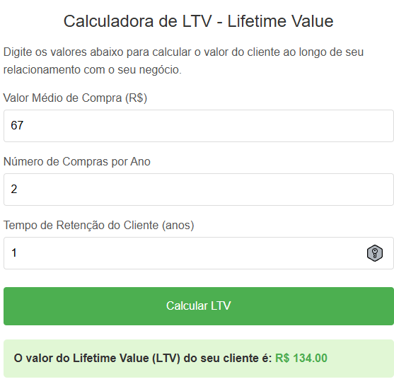 Digite os valores abaixo para calcular o valor do cliente ao longo de seu relacionamento com o seu negócio.