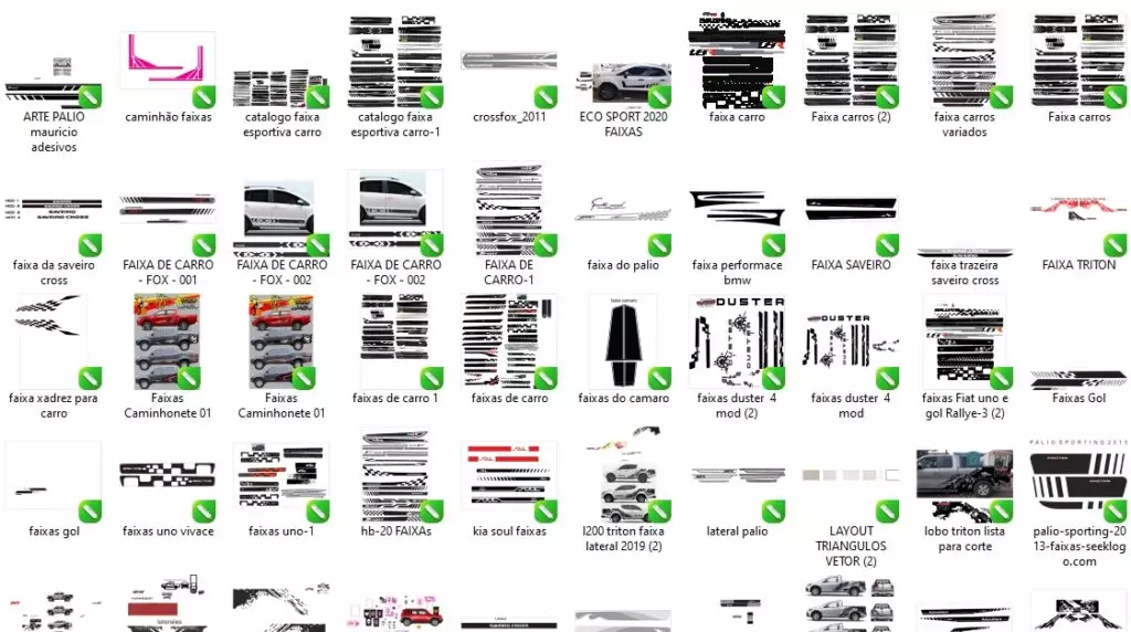 Mega Pack para Veículos com centenas de vetores como Frisos, Kits Gráficos, Faixas, Paralamas, Logomarcas e muito mais